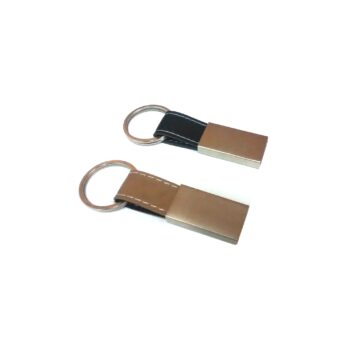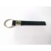 Llavero de bronce con tira eco-cuero costurada negra o marrón y logo grabado simple faz