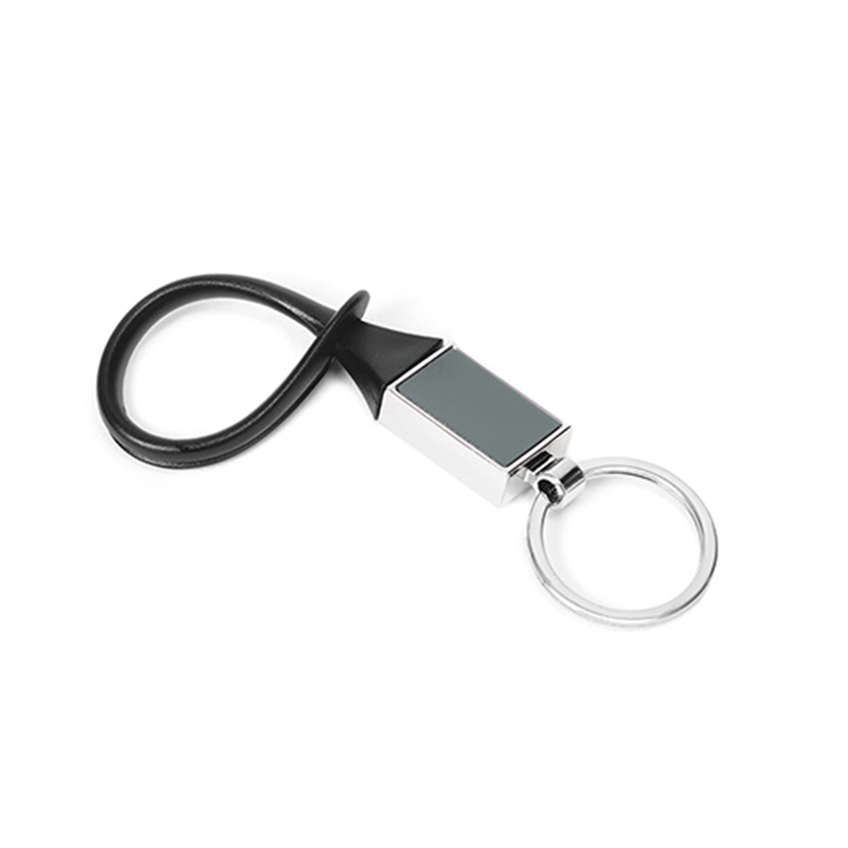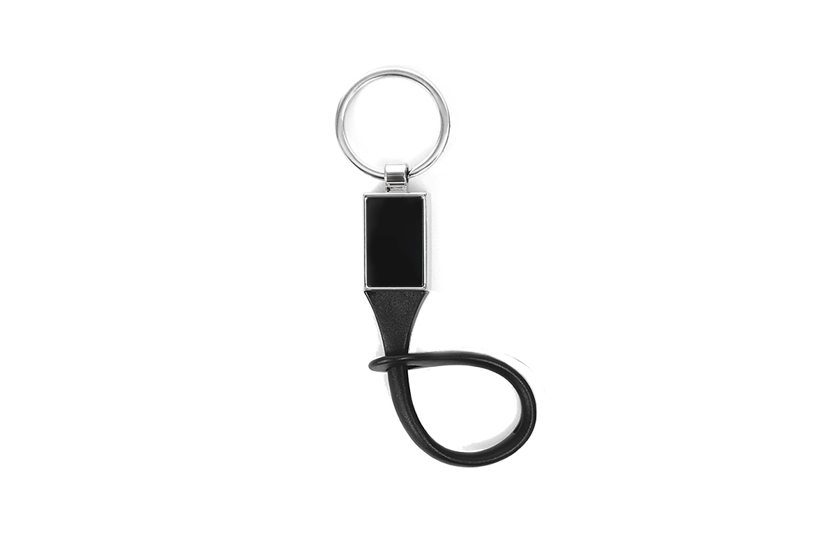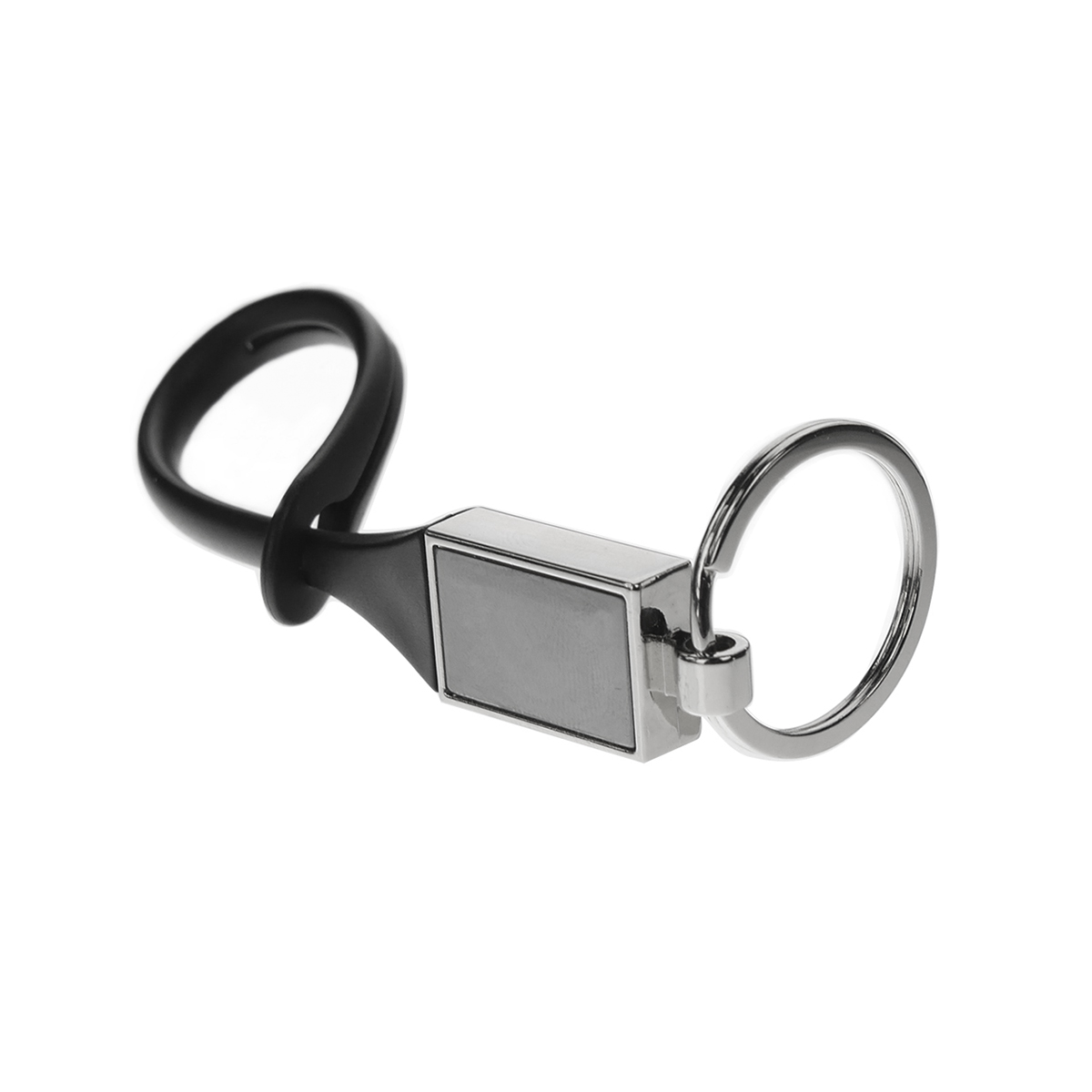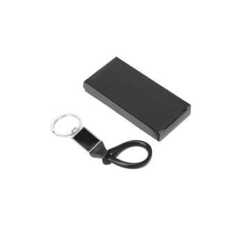 Llavero metálico con clip de goma.