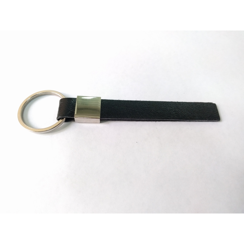 Llavero tira de cuero con herraje superior de bronce, plateado