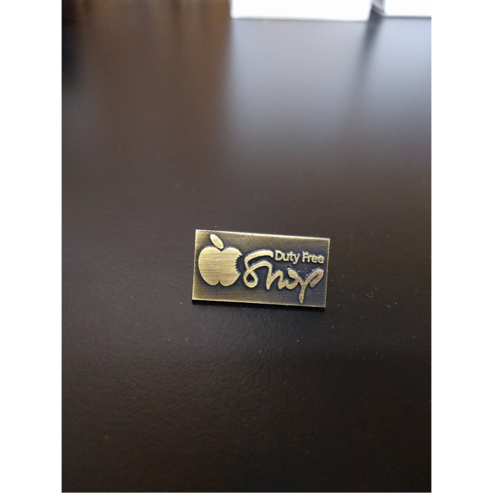 Pin metálico, matrizado con logos en relieve y baño plata antigua u oro italiano