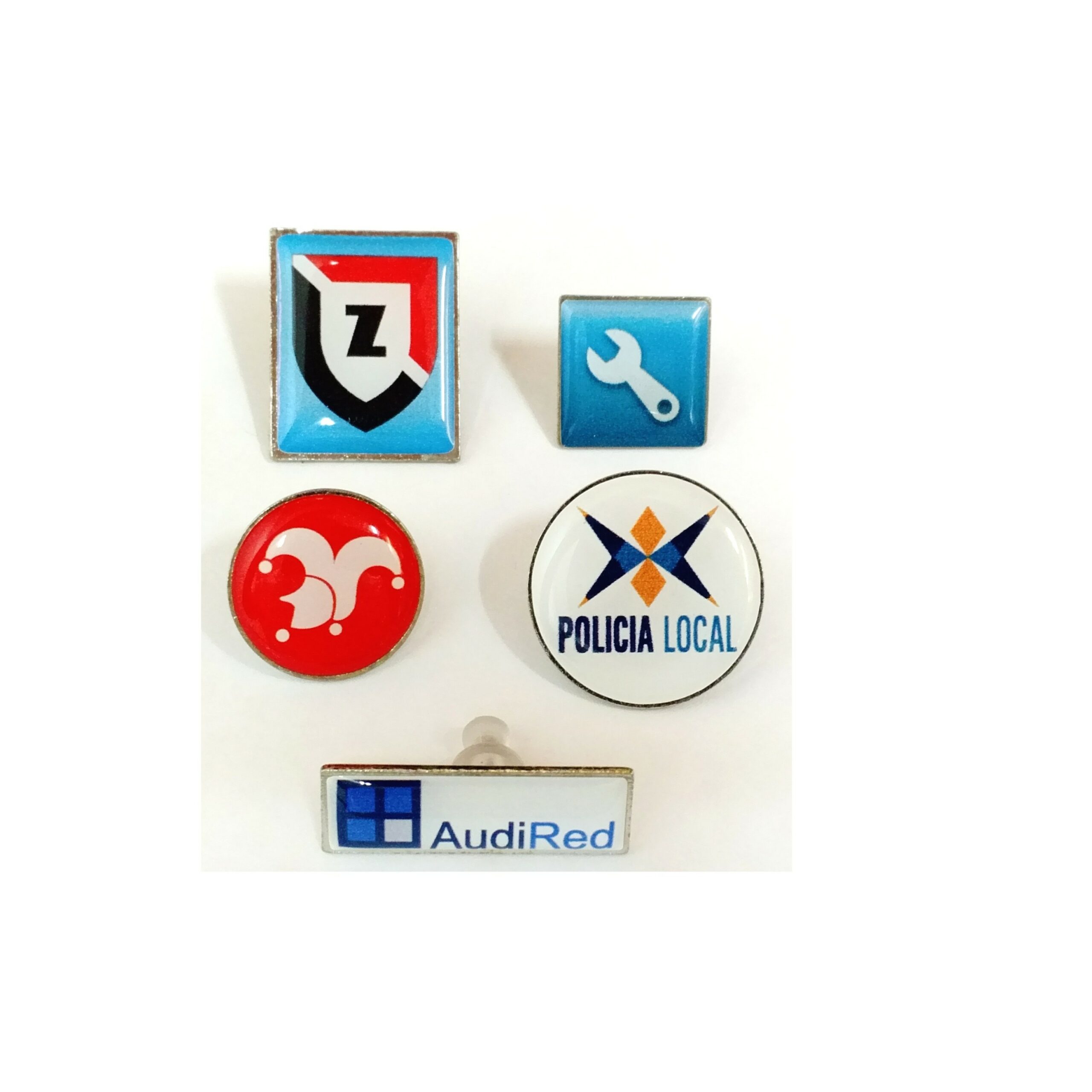 Pin metálico, plateado, bases estándar con dome full color y snap siliconado